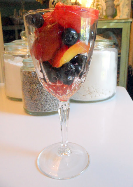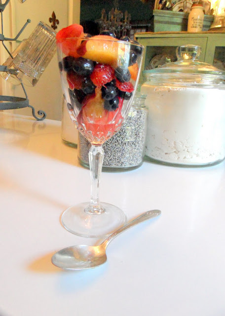 After my Fro Yo adventure, I still had lots of fruit. I couldn't resist all the yummy berries and peaches--plus they were on sale! Yay! Needless to say, I made some fruit salad. Mmmm. Not just any fruit salad, but a Honey Lime fruit salad.