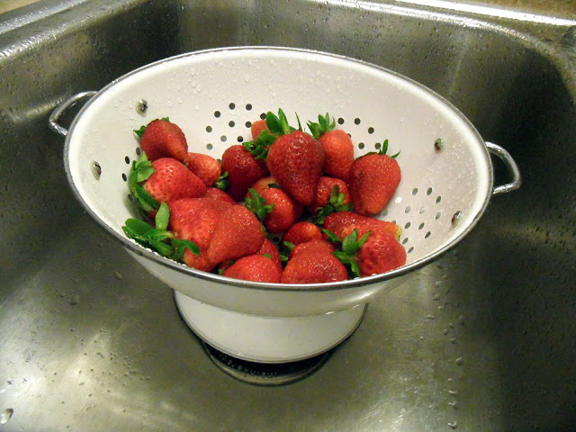 1 1/2 - 2 pounds fresh strawberries (buy a 2lb container, expect a few to be bad plus plan on the few you'll eat as you prepare this...)